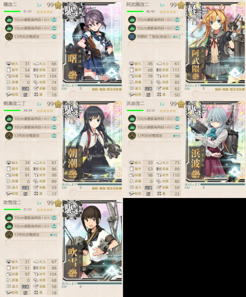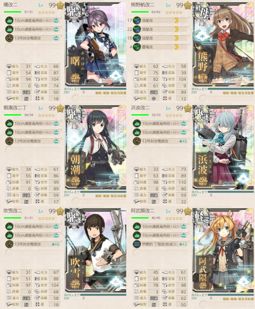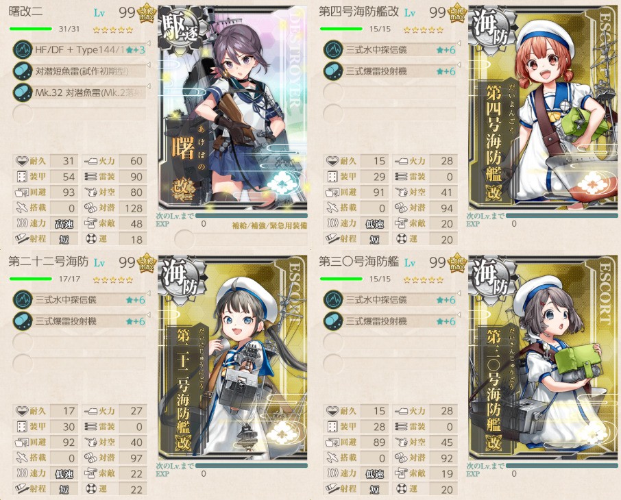 「曙」「朝潮」「巻波」「浜波」「阿武隈」「鵜来」「稲木」「能美」または丁型海防艦、計4隻以上を含む海上護衛艦隊で、鎮守府近海、南西諸島沖、南西諸島防衛戦の制海権を確保せよ!Trick or Treat!