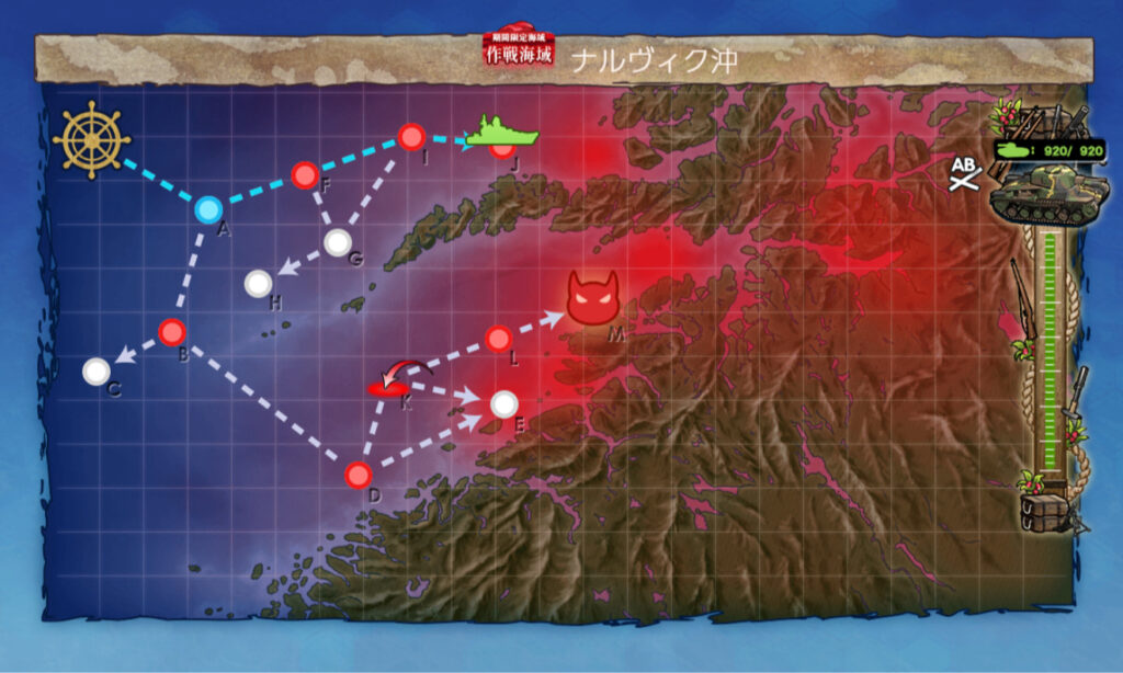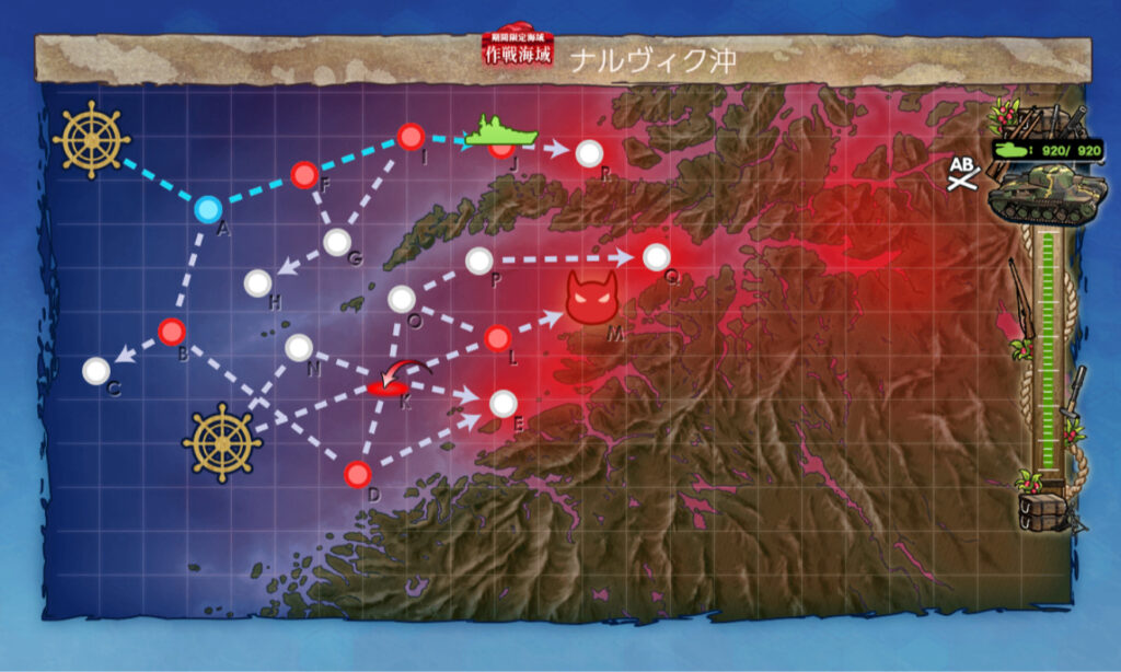 Fマス(距離7)とJマス(距離5)それぞれに1部隊集中。