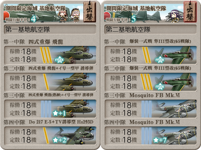 空襲マスで拮抗になるように制空値を調整したが、艦載機が枯れやすく、ボスマスで空母が棒立ちになることも。
