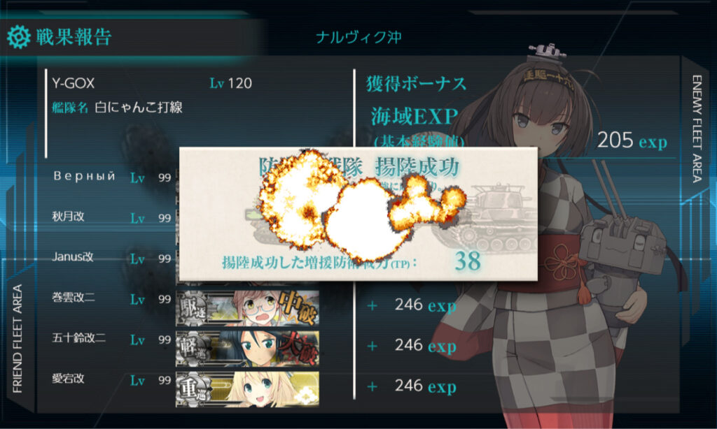 耐久値の高い補給艦と陸上型が出てくるパターン。タゲが悪いとS勝利を取り逃がすが、A勝利でも良いなら決戦支援はいらない。輸送連合でやる場合は出した方が良いかも。
