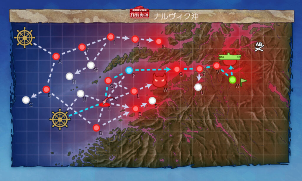 輸送連合だとK→Pに進むが、自分は空母機動部隊でやったのでOマスを経由する。