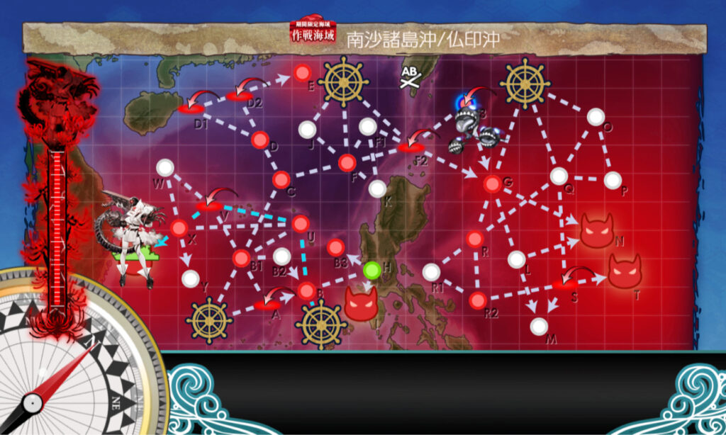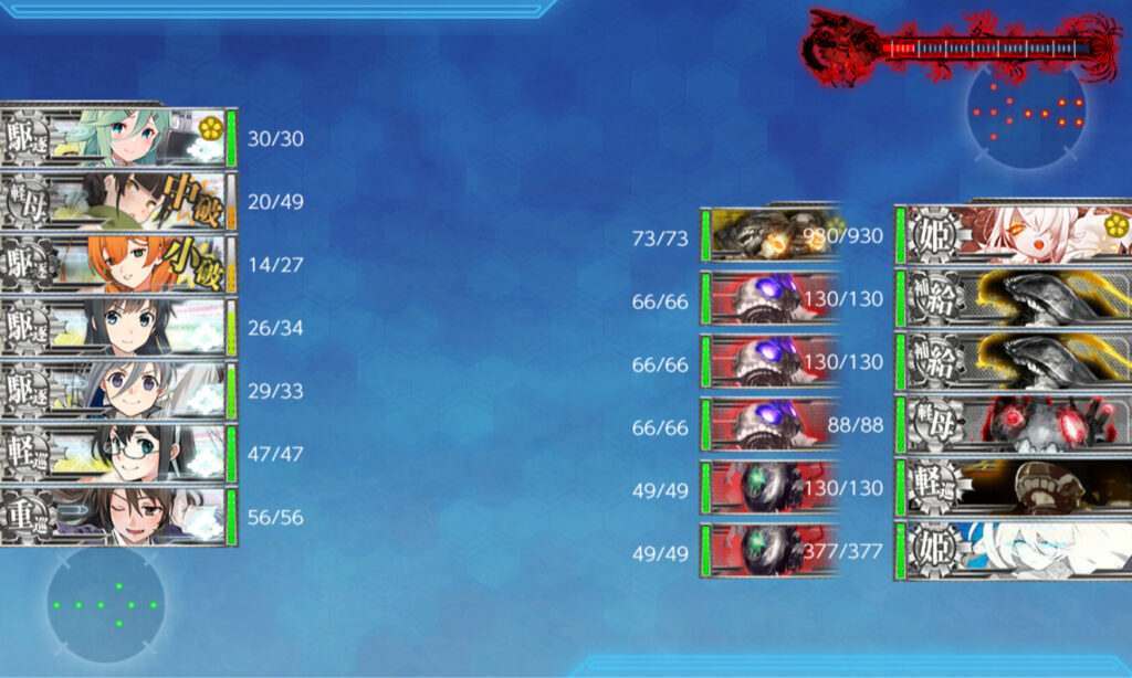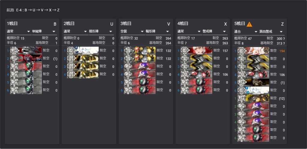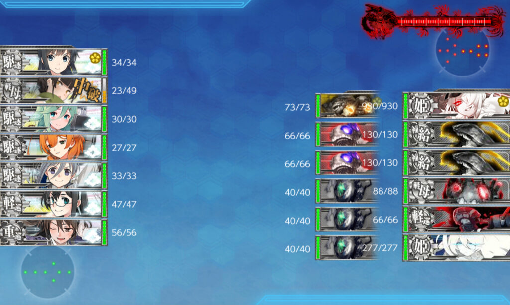 上に対潜艦を、下に火力艦を置いた編成。ボスマスでは警戒陣を使った。