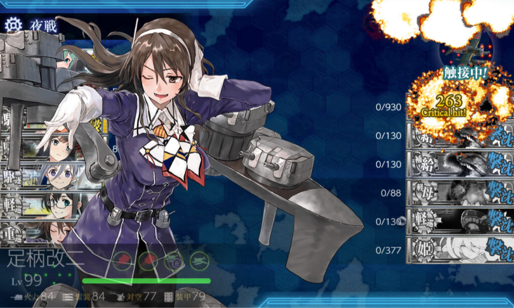 昼戦でボス単艦に追い込み、最後は足柄の連撃でクリア。