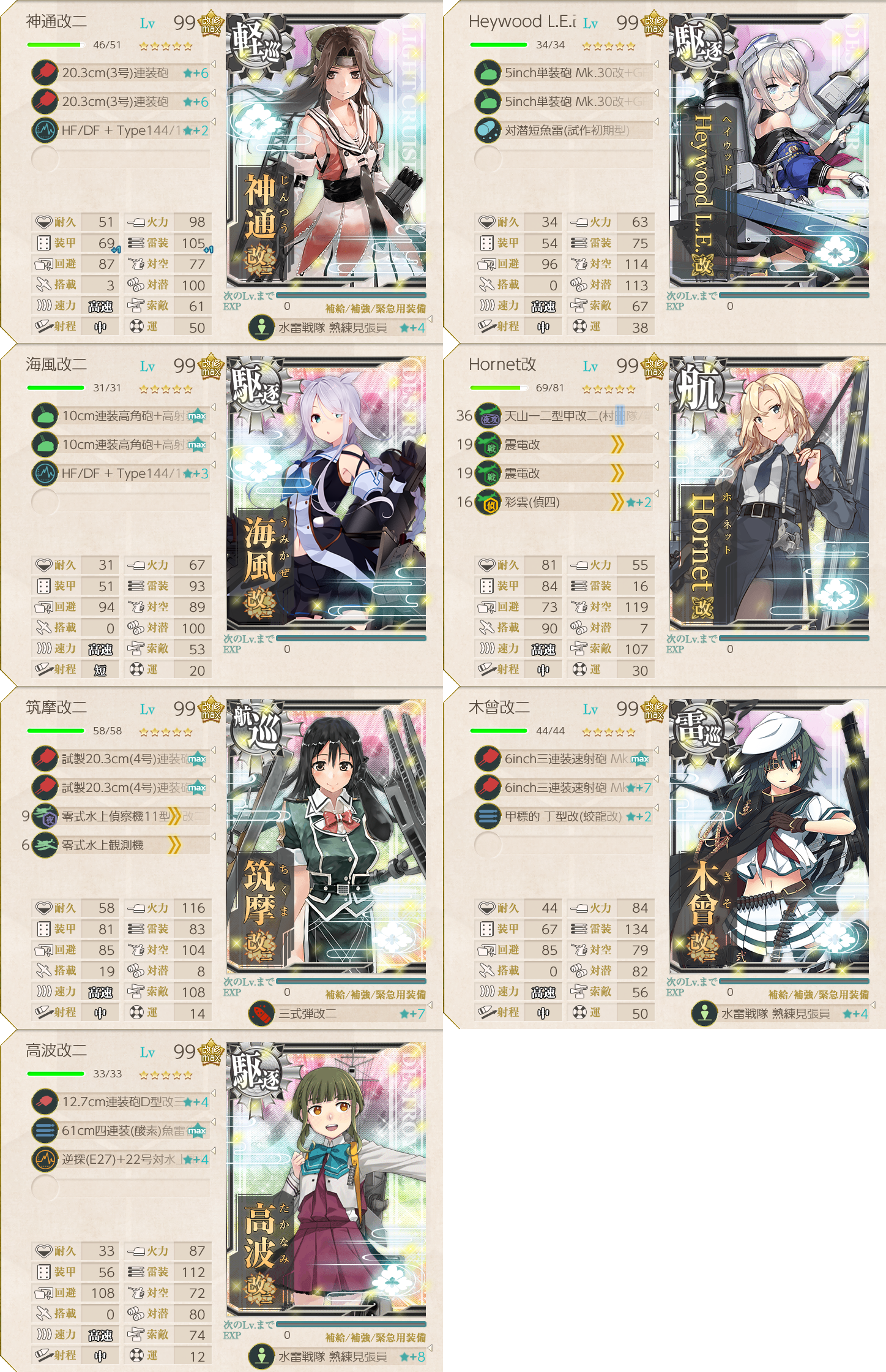 このギミックでしか使わないので、今後の攻略に使わなさそうな艦を起用した。