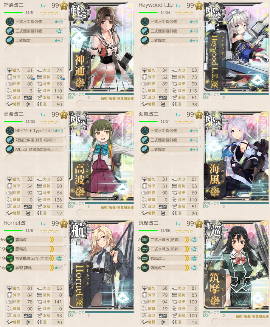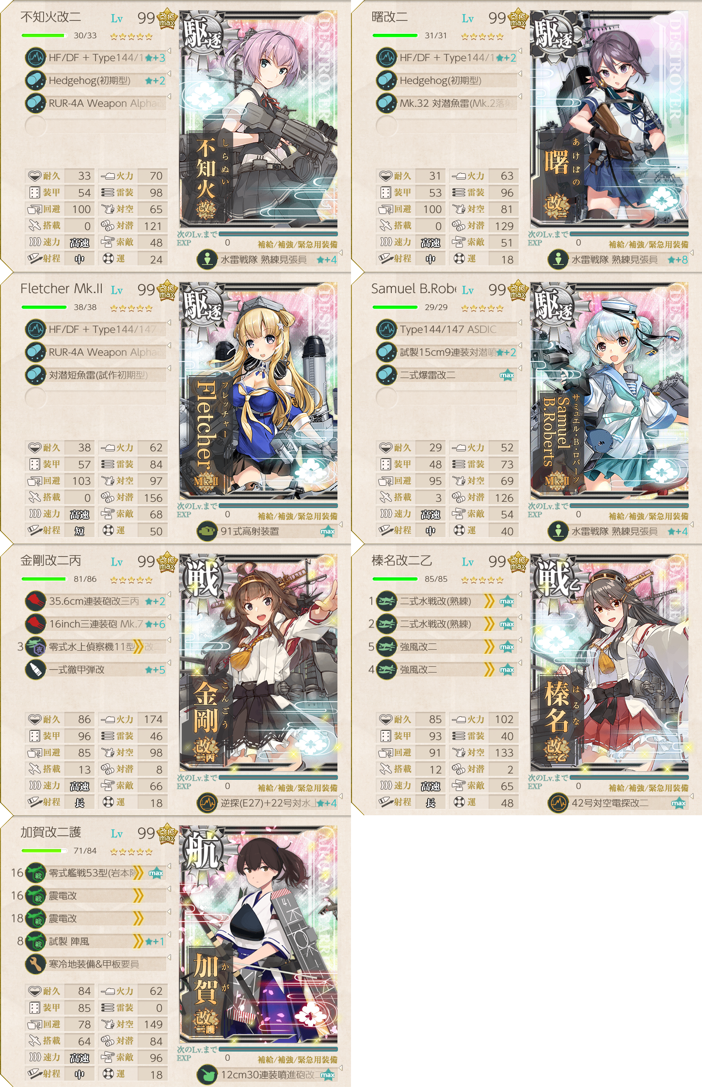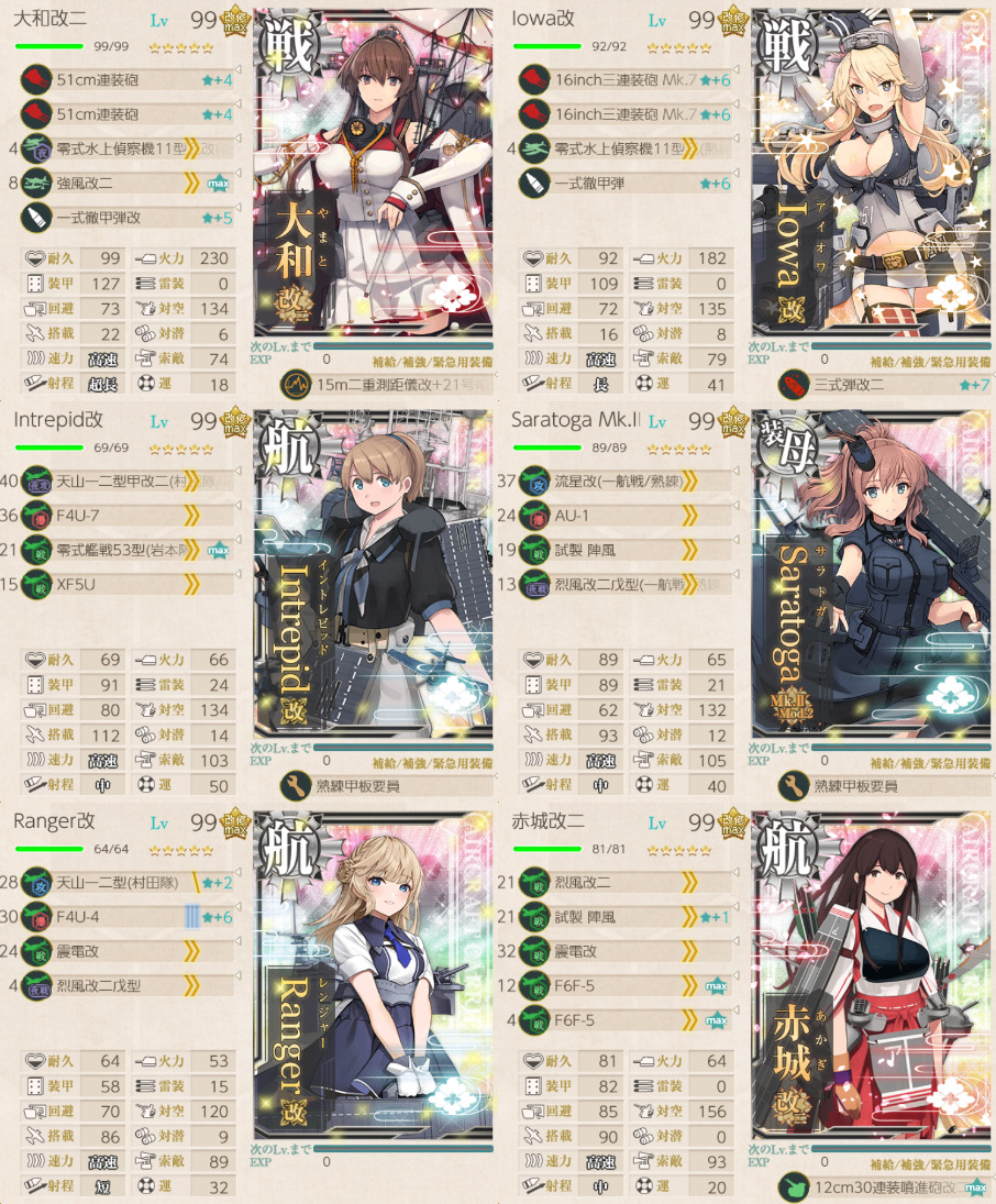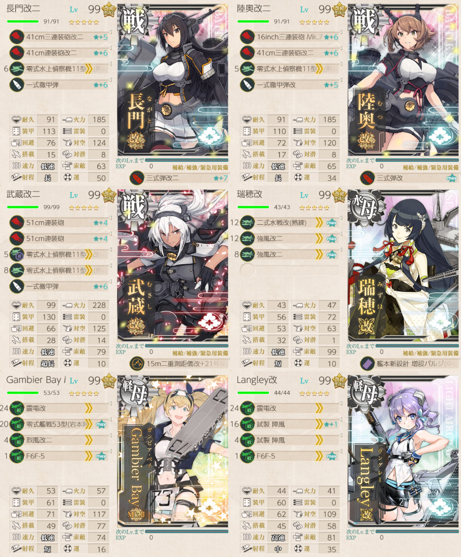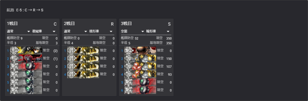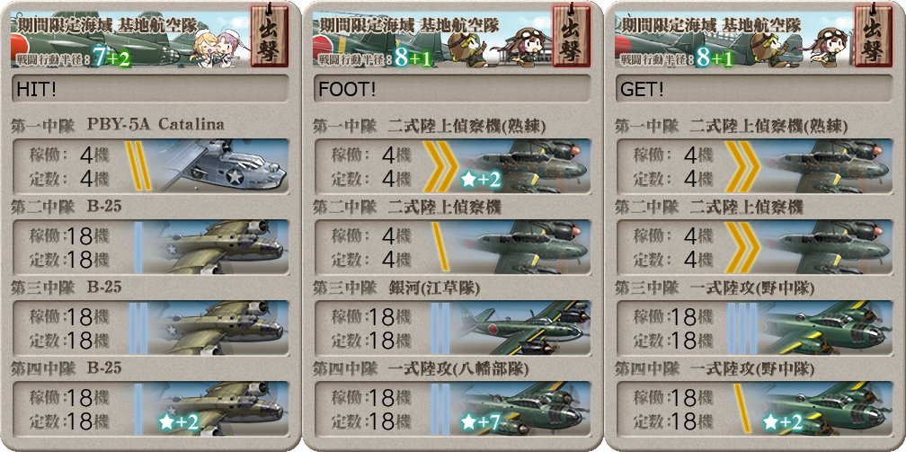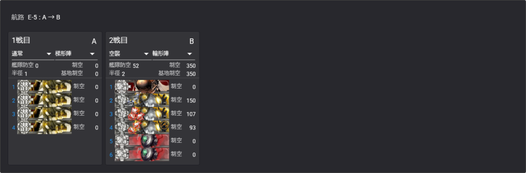 加賀と榛名で制空を稼ぐ。強編成を引いた場合、後述の基地航空隊を合わせないと優勢が取れない。