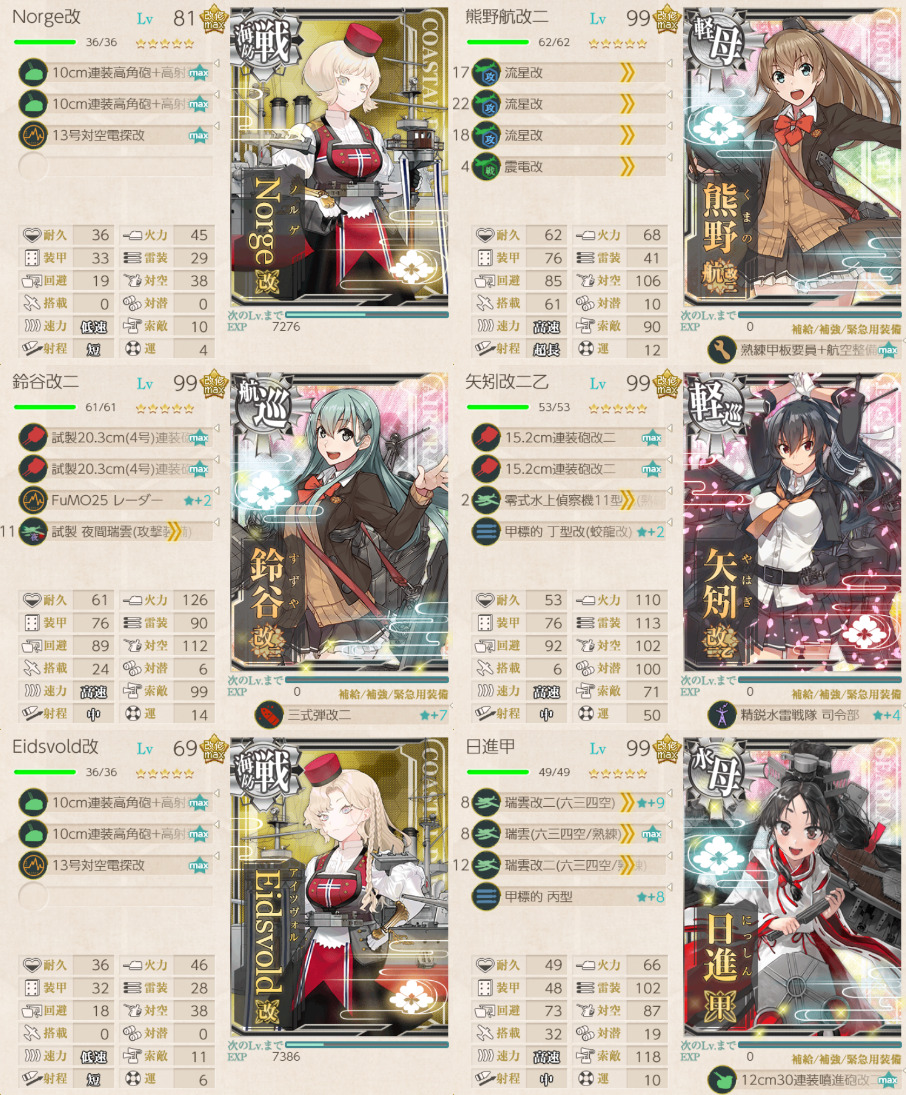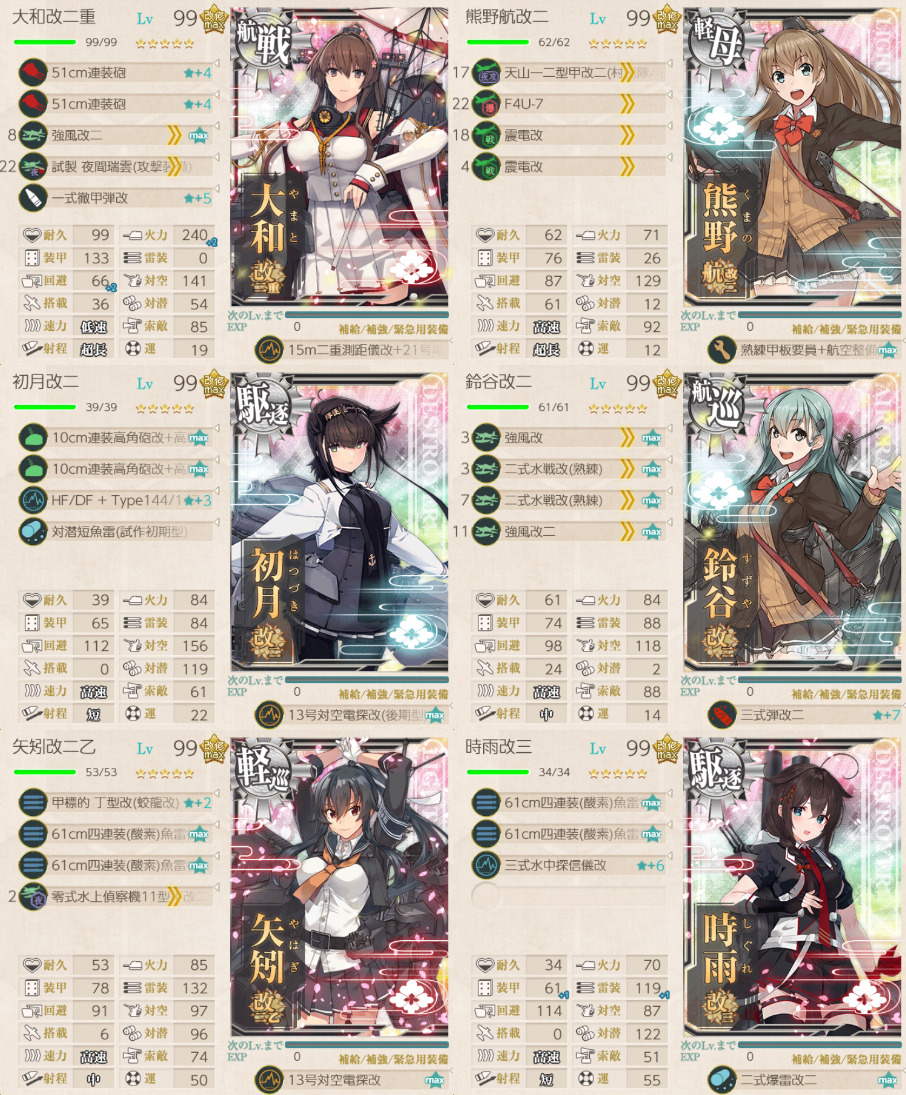 - 戦闘詳報×2 or 22号対水上電探改四(後期調整型)☆4 or 勲章×4