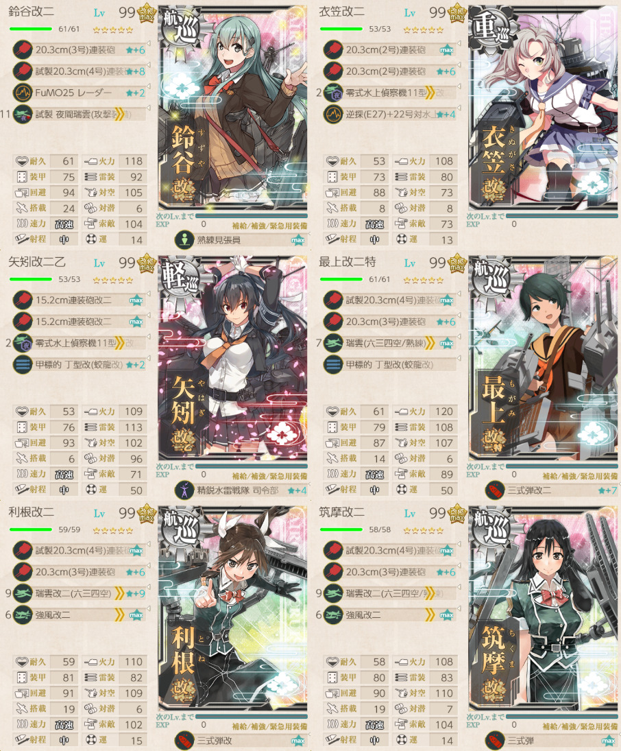 「衣笠」「鈴谷」「熊野」「大淀」「球磨」「鹿島」「矢矧改二/乙」「酒匂」「Sheffield」「Atlanta」3隻以上を含む艦隊でバシー海峡、サブ島沖海戦、サーモン海域北方を反復制圧せよ!