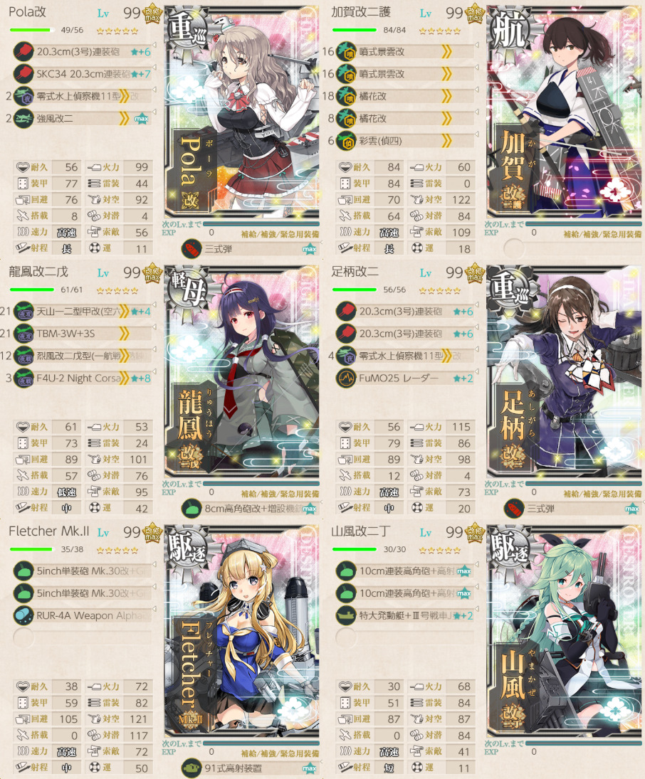 下の2艦の魚雷カットイン装備は7-5-3用。4-1と4-2は魚雷を主砲に替えても問題ない。