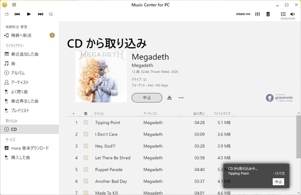 今まで音楽CDの取り込みには「Windows Media Player」を使っていたのだが、MEGADETHの新譜を取り込もうとしたところなぜか楽曲情報を取得できなかった。