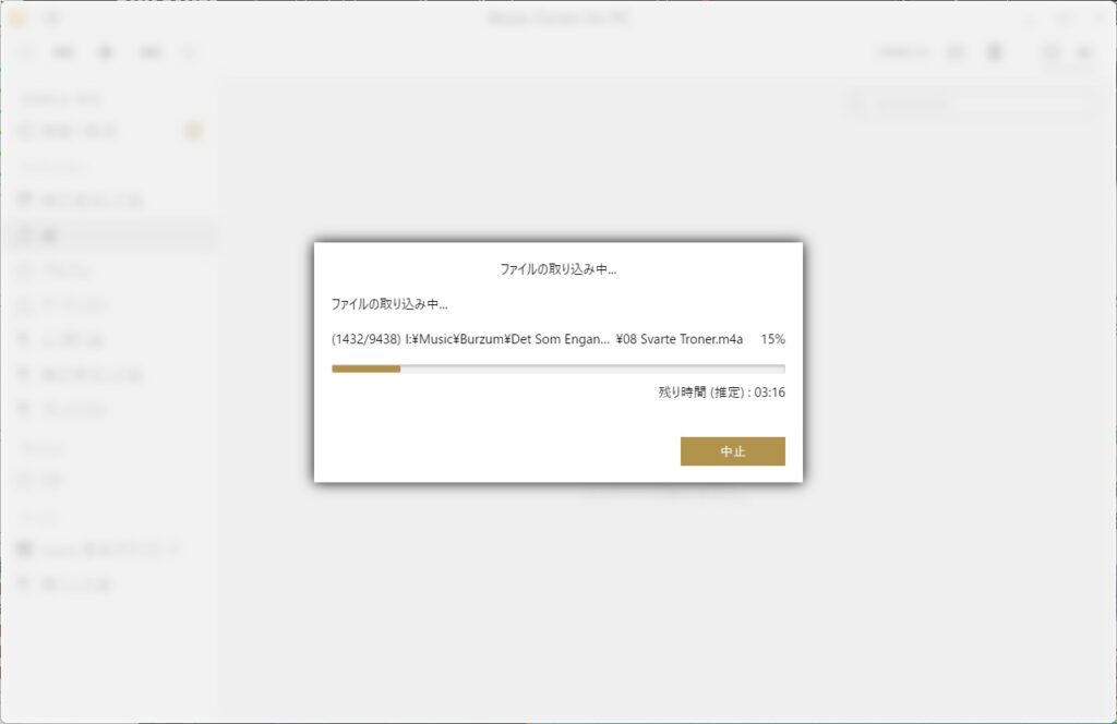 インストールが完了して起動すると、まずは音楽ファイルの読み込みが始まる。