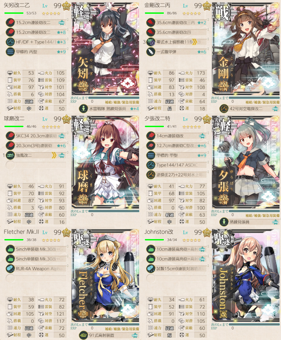 装備は、どんな相手でもある程度対応できるようにした。相手がガチガチの強編成だった場合は、もうちょっと考えたほうが良い。