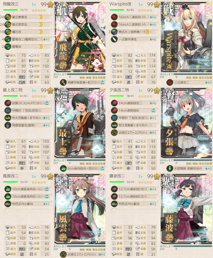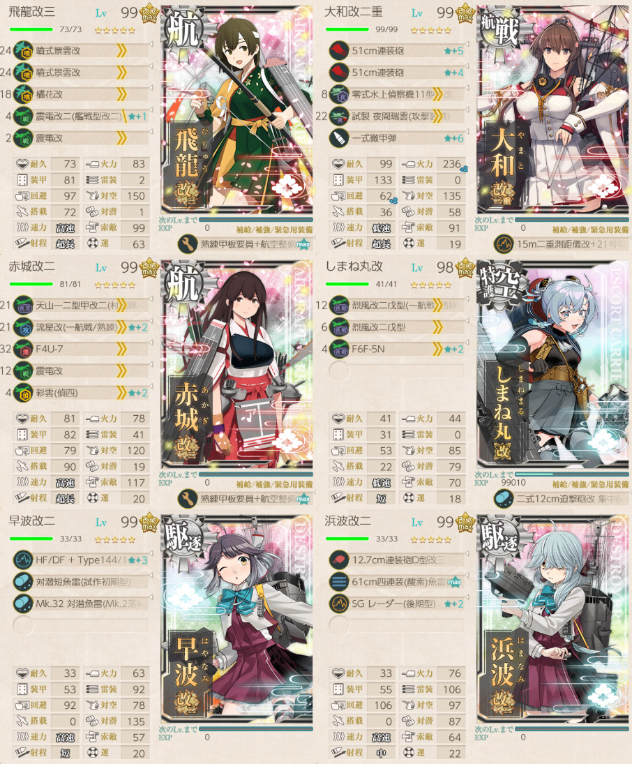 飛龍にジェット積むとボス戦でほとんど動けないので、艦攻にした方が良かった。艦攻の場合は制空上げないといけないかも。