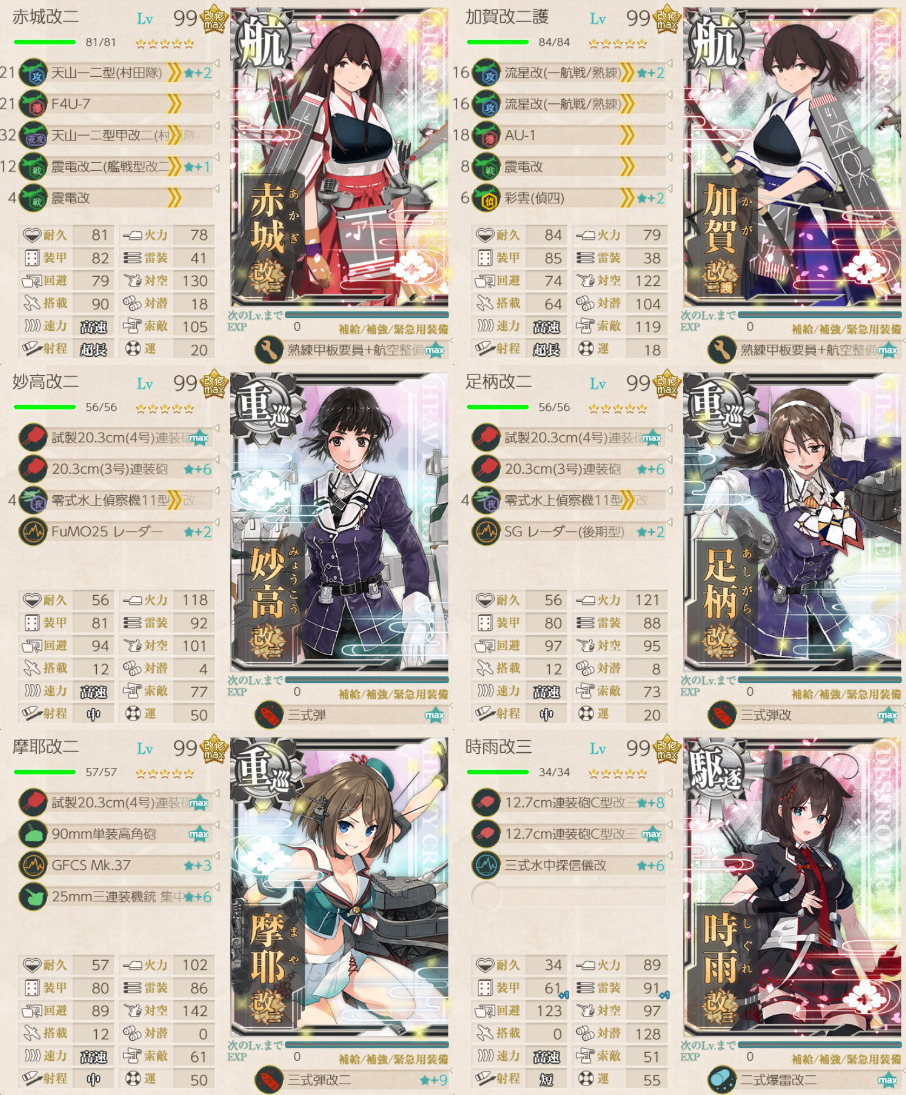 正規空母×2、重巡×3、駆逐艦×1の編成。
