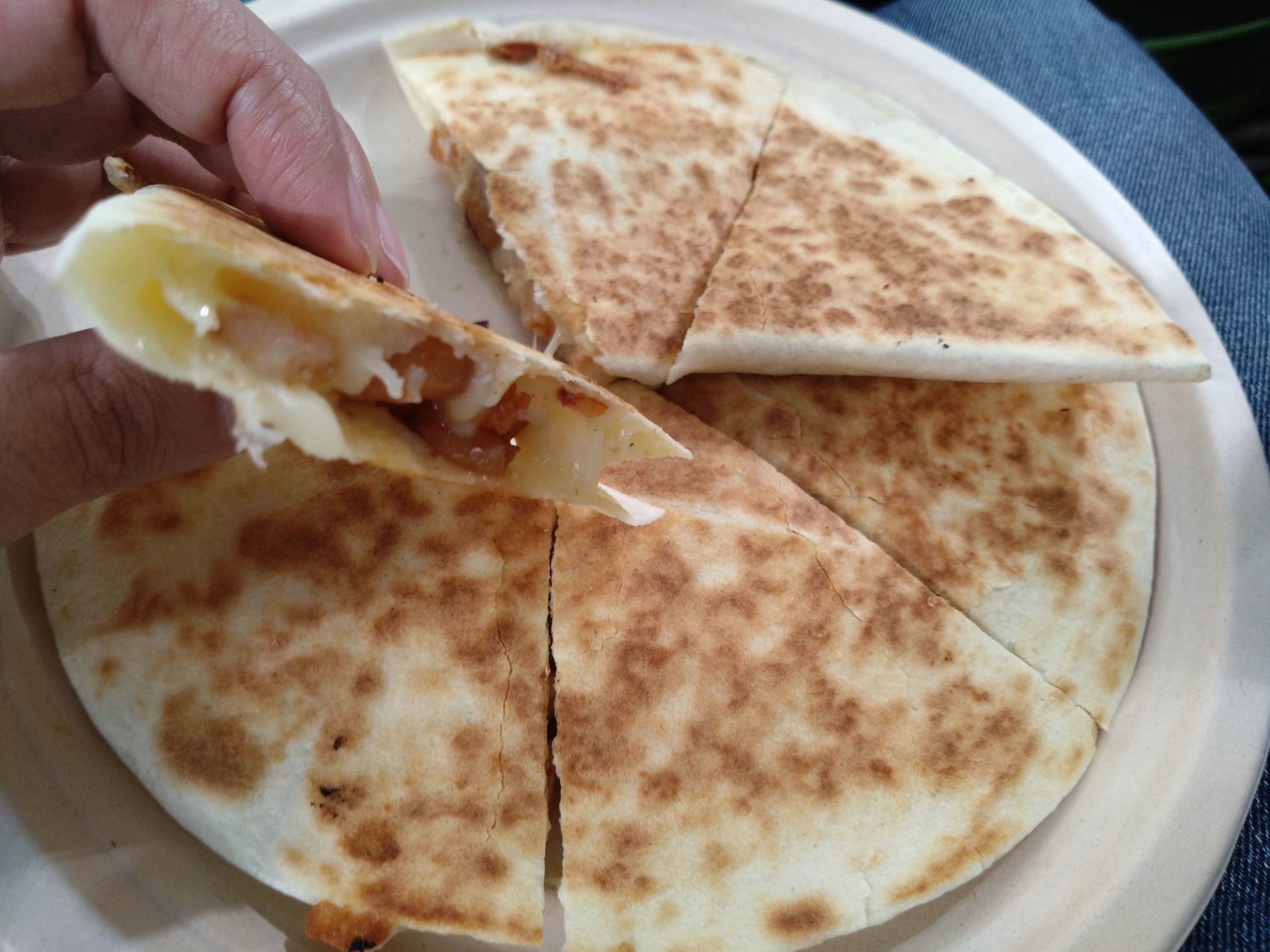 一塁側ということで、まずはケサディーヤ(シュリンプ)。