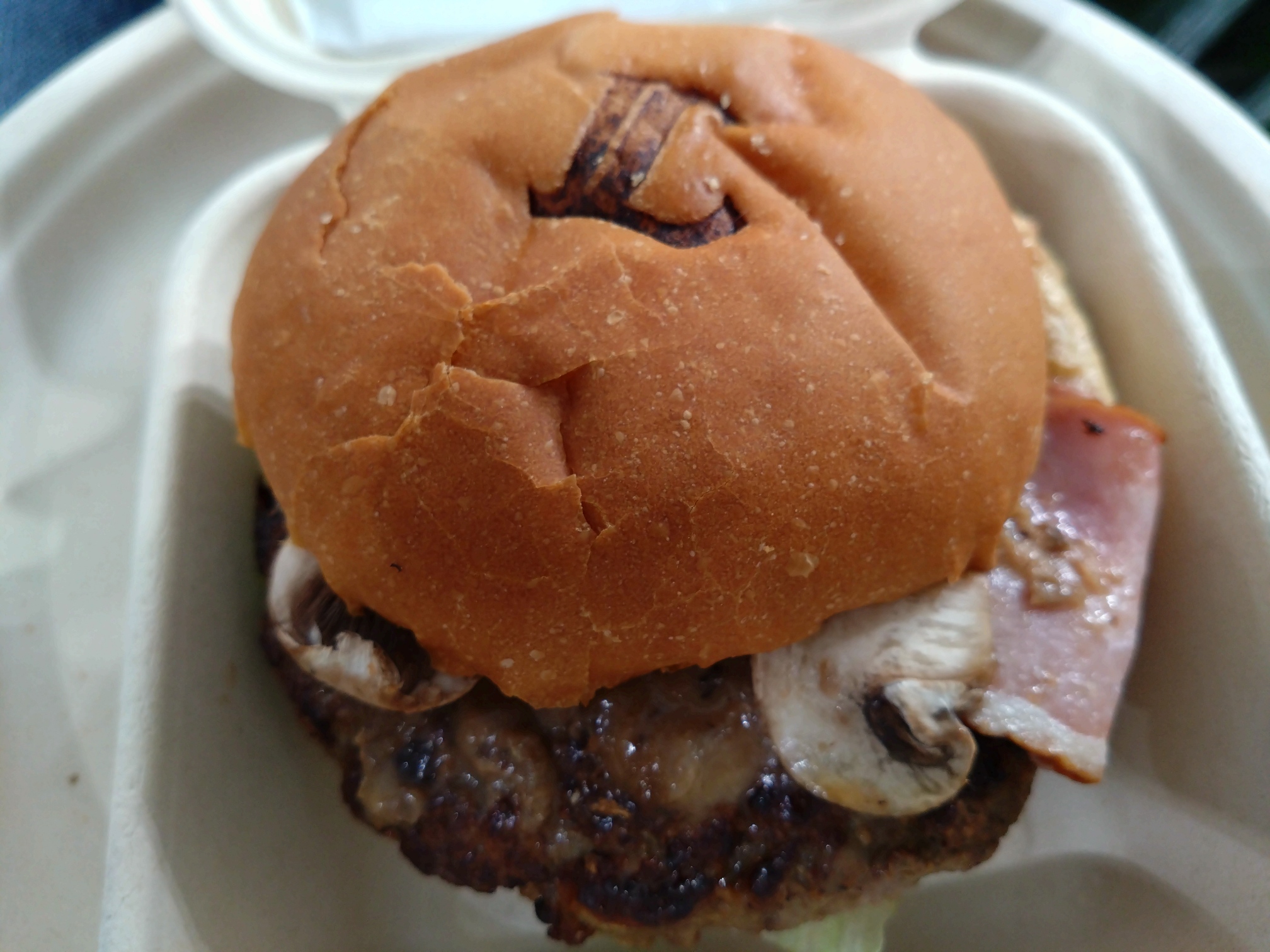 公式サイトの画像と比べるとマッシュルームが薄くて残念。でも、ハンバーガー自体は美味しかった。