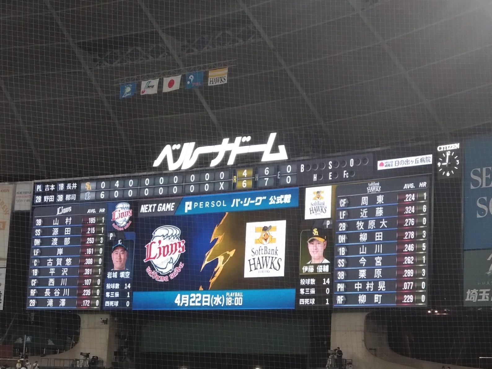 本日のヒーロは、2打点の滝澤夏央。車に乗った滝澤くんが目の前を通ったから写真撮ったけど、下手くそすぎて滝澤くんが分からんw