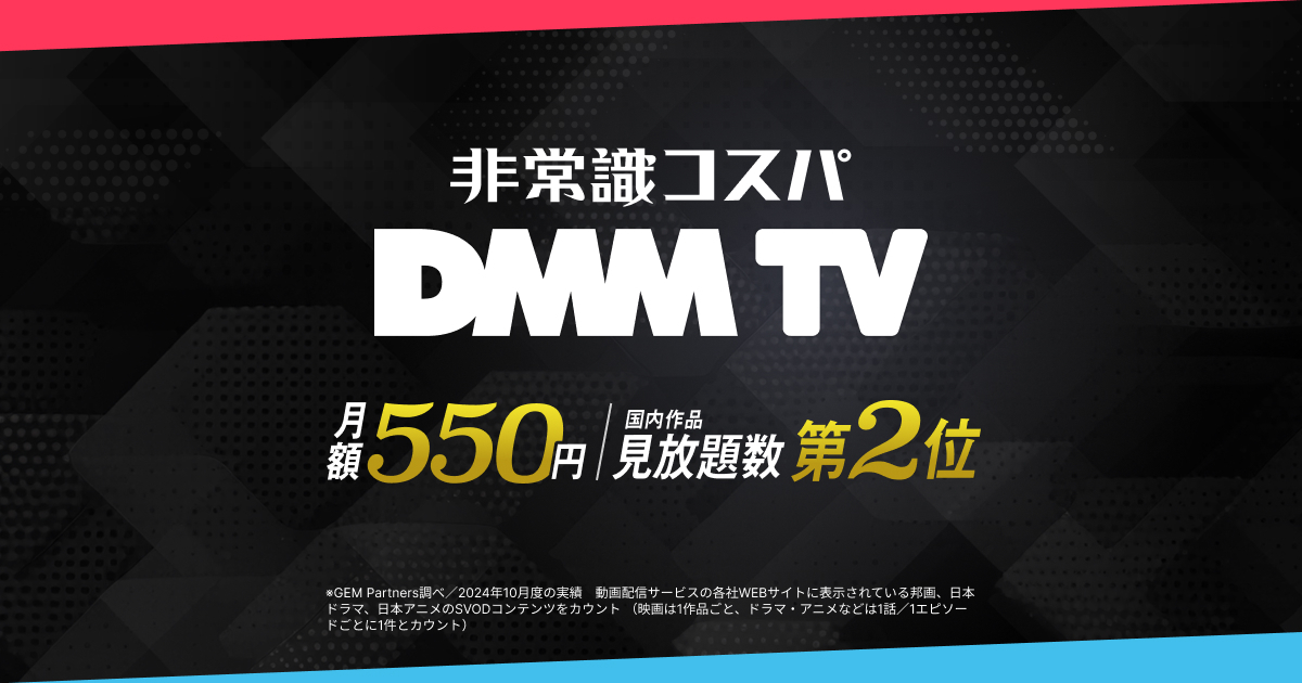 国内作品見放題数2位!DMM TVならアニメ・お笑い・バラエティ・国内ドラマ&映画が充実!ここでしか見れない独占・オリジナル作品も!非常識コスパで楽しめる!【初回14日間無料】