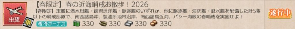 後続には春限定任務の続きだけでなく、第一遊撃部隊任務も出てきます。早くやっておきたいです。