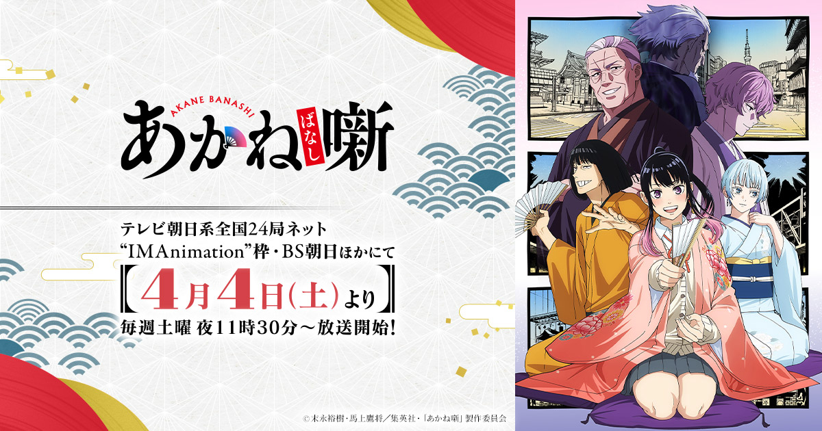 TVアニメ『あかね噺』公式サイト|テレビ朝日系全国24局ネット“IMAnimation”枠・BS朝日ほかにて4月4月(土)より毎週土曜 夜11時30分~放送開始