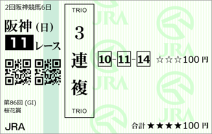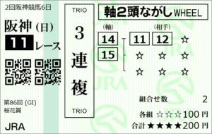 3連複(押さえ+一撃)300円